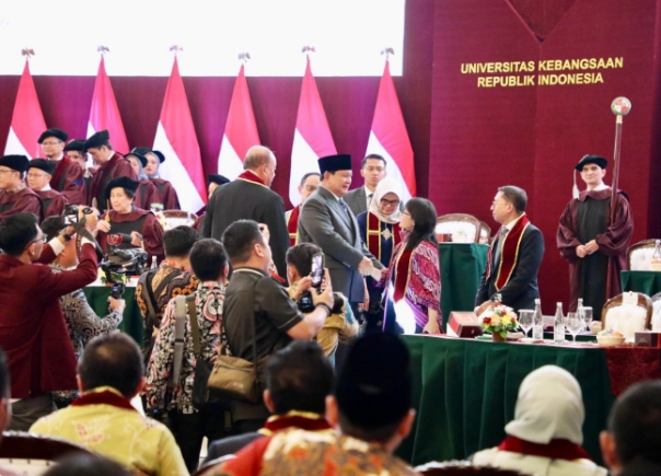 Presiden Republik Indonesia sekaligus Ketua Yayasan Pendidikan Kebangsaan Republik Indonesia, Jenderal TNI (Purn.) Prabowo Subianto menyampaikan pesan mendalam kepada para wisudawan dan mahasiswa baru.