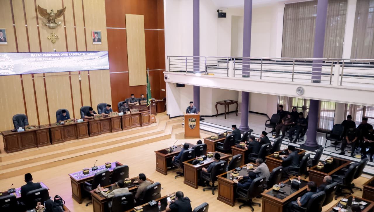 Kabupaten Ciamis, ER3 News.com – Bupati Herdiat sampaikan penjelasan mengenai Rancangan Peraturaan Daerah (Raperda) tentang Anggaran Pendapatan dan Belanja Daerah (APBD) Tahun Anggaran 2026 dan Raperda tentang Perusahaan Perseroan Daerah BPR Galuh pada rapat paripurna DPRD Kabupaten Ciamis yang di selenggarakan di Ruang Tumenggung Wiradikusumah Gedung DPRD Kabupaten Ciamis, pada Jum’at (07/11/2025).