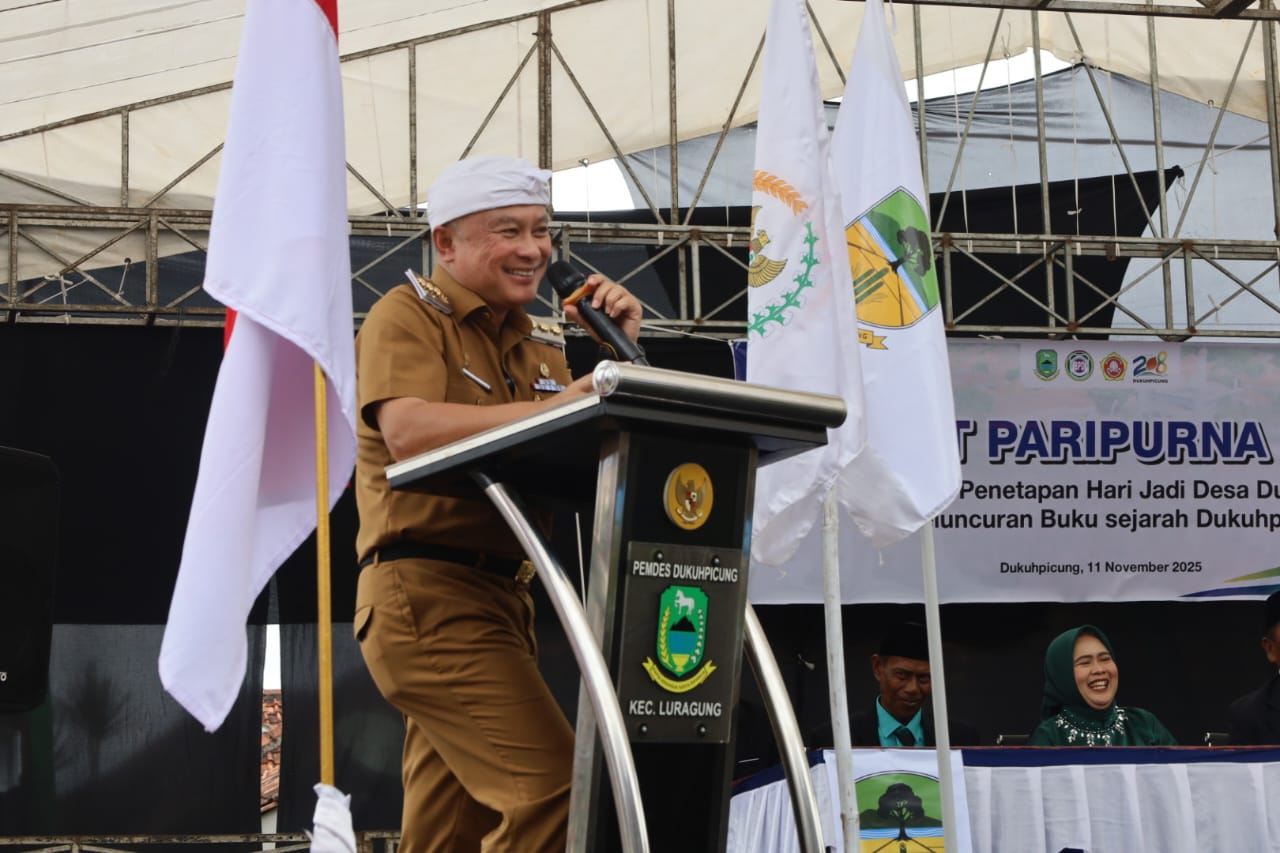 Dalam sambutannya, Bupati Dian menegaskan bahwa momentum hari jadi desa tidak sekadar seremonial, tetapi menjadi ajang untuk merefleksikan perjalanan panjang sejarah dan perjuangan para pendahulu yang telah membangun fondasi kehidupan masyarakat Desa Dukuhpicung hingga kini.