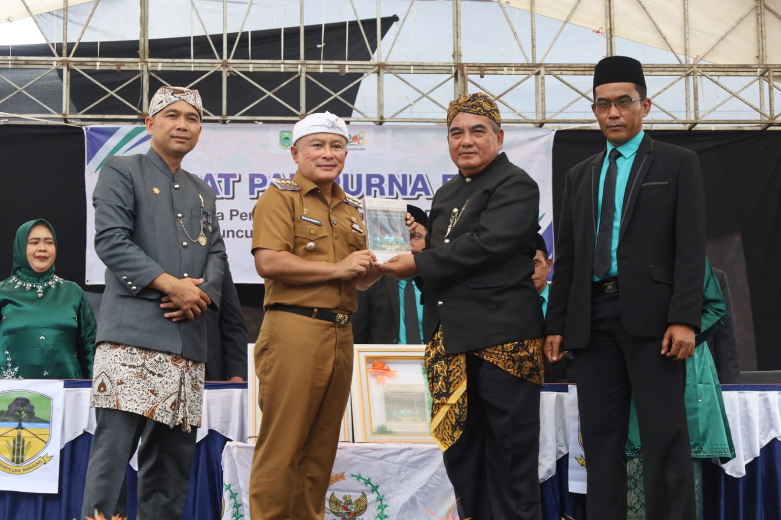 Sebagai penutup rangkaian acara, secara simbolis Kepala Desa Dukuhpicung, H. Iran Irianto, menyerahkan cinderamata berupa buku sejarah Desa Dukuhpicung kepada Bupati Kuningan, Dr. H. Dian Rachmat Yanuar, M.sI. Penyerahan tersebut menjadi simbol penghargaan dan pelestarian nilai-nilai sejarah serta warisan budaya yang menjadi kebanggaan masyarakat Dukuhpicung.