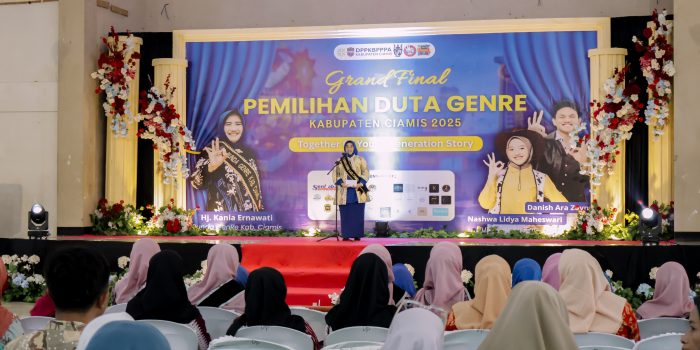 Kabupaten Ciamis,– Grand Final Pemilihan Duta Generasi Berencana (Genre) Kabupaten Ciamis Tahun 2025 resmi di buka oleh Bunda Genre Kabupaten Ciamis, Hj. Kania Ernawati Herdiat, pada Sabtu, 29 November 2025. Bertempat di Gedung Kesenian Kabupaten Ciamis, acara ini di hadiri oleh Kadis P2KBP3A, H. Yoyo beserta beberapa OPD terkait lainnya, pasangan Duta Genre terbaik dari 27 Kecamatan se-Kabupaten Ciamis, yang siap bersaing menjadi teladan remaja.