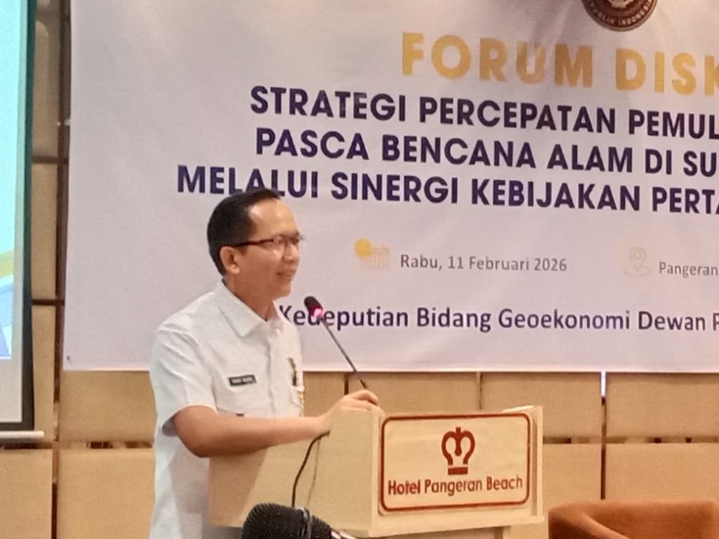 Padang, ER3 News.com – Deputi Geoekonomi Dewan Pertahanan Nasional (DPN), Dr. Yayat Ruyat, M.Eng., memimpin kegiatan forum diskusi. Dengan tema “Strategi Percepatan Pemulihan Ekonomi Pasca Bencana Alam di Sumatera Barat melalui Sinergi Kebijakan Pertahanan Negara” di Padang, Sumatera Barat, pada Rabu (11/2/2026).